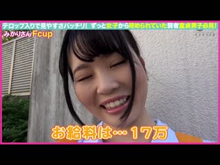 Overview: 【見やすいテロップ入りで抜きやすさバッチリ!】勤続1年目のみかりさん。柔らかいおっぱいの持ち主で何とFカップ!緊張しながらも筆下ろしチャンレンジに挑戦!恥じらいながらも素敵な思い出にするために授乳手コキやフェラでいっぱい気持ちよくさせていく!全てを包み込んでくれる愛情のSEX!筆下ろしで生中出しまでしちゃいます! 【収録時間】時間と分数表記になっております。時間には若干ズレがございますのでご了承ください。 00:00~ 待ち合わせ 01:32~ スタジオへ移動し企画内容説明 02:21~ 童貞君登場 03:32~ キス、ハグ 05:19~ 膝枕 07:01~ 服&ブラの上からおっぱいを触る 09:55~ ブラを外し生乳揉み 15:27~ チ●ポ弄り、フェラ 19:17~ 授乳手コキ 21:15~ 指マン、フェラ 26:15~ 素股 28:59~ 騎乗位で挿入 33:52~ 正常位(ゴム中発射)