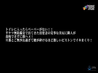 Overview: 美尻でhipサイズ88センチ人妻4名の身に降りかかるHなハプニング!!トイレにペーパーの予備も無い!?パンツが汚れちゃうから穿けないし…誰も居ない隙にと思い尻丸出しでトイレから飛び出したら突然お隣さんがやってきた!パート2。美尻妻たちの欲求不満過ぎてマン汁ダダ漏れマンコに即ズボッ!ムチムチデカ尻見せ付け欲求不満マンコがチンポ丸呑み!美尻が液体塗れに汚れて淫乱雌臭を放つ。