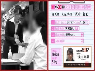 紹介: 公開健康診断と称した2018年度SOD健康診断。健康状態を多くの人に確認してもらい社員の健康をしっかりと守ることを目的としました。男子社員のいるフロアで丸裸になり検査がスタート!もちろん子宮や肛門の中まで指を入れてしっかりと検診。性交の実演では何度も絶頂!気持良さそうでした。真似できない伝統行事が今年も開催!