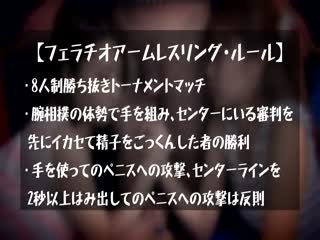 소개: フェラ上手なAV女優8人がお互いに向かい合い腕相撲のように組み合って手は使わずに口だけで1本のチ○ポを奪い合う新バトル!先にチ○ポをイカせて精子ごっくんした方が勝ち!一回戦は着衣、準決勝決勝はトップレス対決の勝ち抜きトーナメント!バッチバチに相手を挑発しながら濃厚フェラ、チ○ポ丸呑みバキューム吸引!